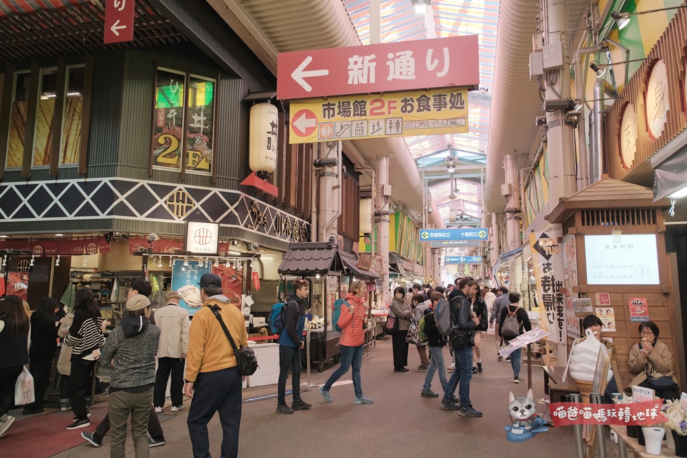 這裡聚集了近170家店舖,與京都錦市場的細長型街道不同,近江町市場更像是一個錯綜複雜的大迷宮,由好幾條街道交織而成,雖然有屋頂遮風避雨,但若沒有方向感還真的很容易迷路。