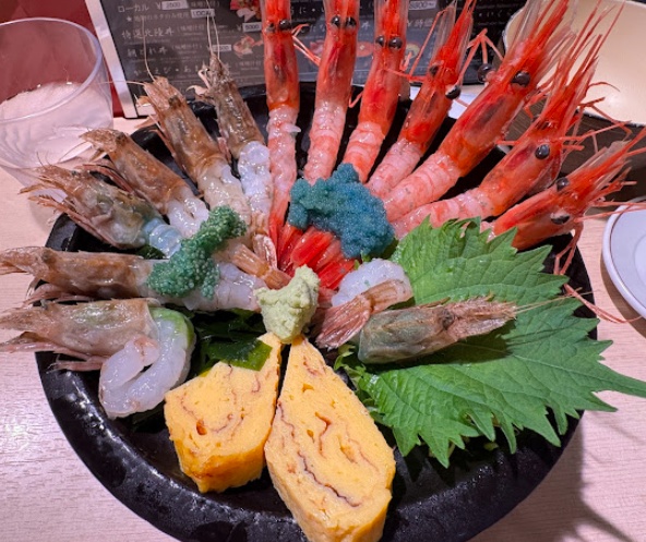 豪華海鮮丼絕對是近江町市場的招牌,特色就是「浮誇」。滿滿的生魚片、甜蝦、鮭魚卵滿到幾乎看不到下面的白飯,有些店家甚至會豪邁地撒上一大片金澤特產的金箔,光看照片就覺得痛風也甘願。