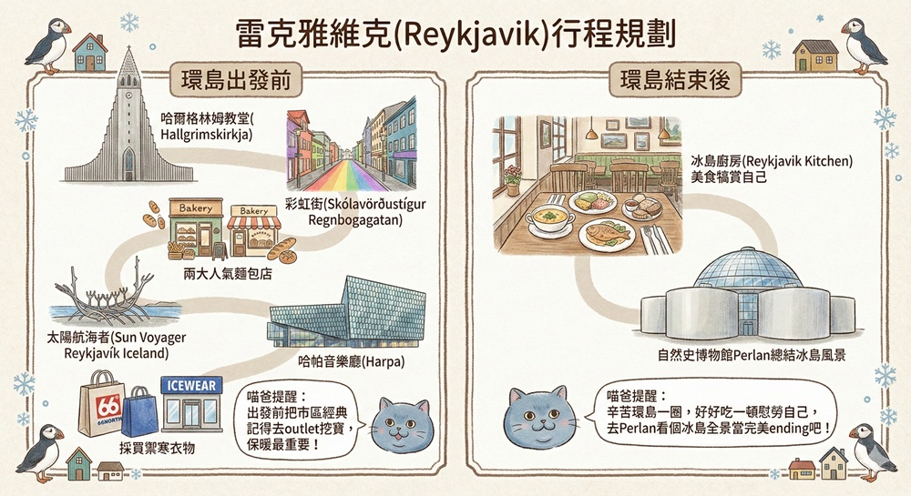 雷克雅維克(Reykjavik)市區景點大概半天就能悠閒走遍,不過喵爸覺得安排還是有些秘訣的。