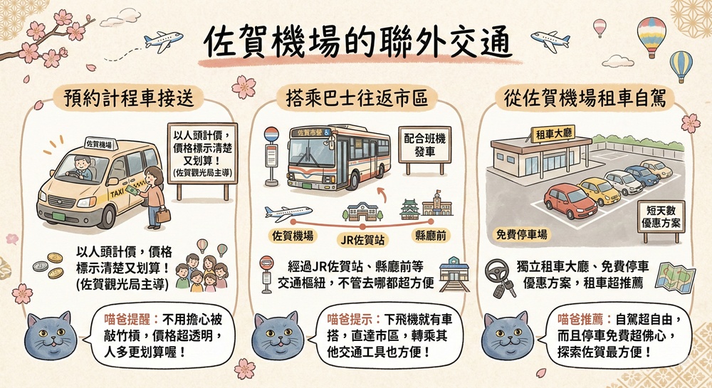 佐賀機場目前仍以團體旅客居多,許多人會覺得交通不便或是不知道如何規劃,其實佐賀機場為了歡迎遊客們前來早就已經準備好多樣的配套措施,這篇就讓喵爸分享佐賀機場的交通大小事吧^^