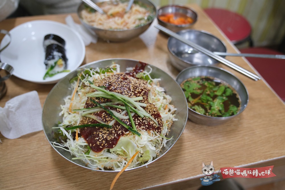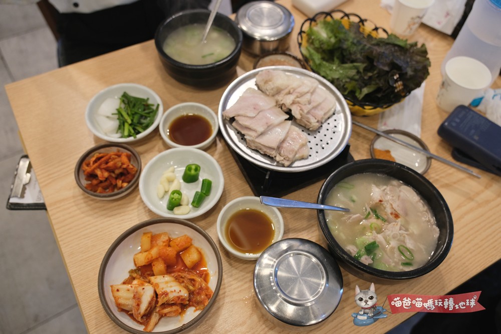 人氣最旺的就是三五亭 (삼오정)的人嵾雞、松亭3代豬肉湯飯(송정3대국밥)、機張手工切麵(기장손칼국수),不貴且滿滿在地滋味,喵爸建議一餐一樣全部收集起來。