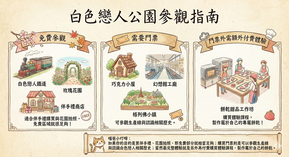 免費參觀:白色戀人鐵道、玫瑰花園、伴手禮商店
