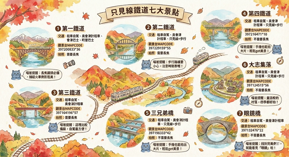 備註1:只見線鐵道7大景點mapcode喵爸列在剛才的圖片之中
