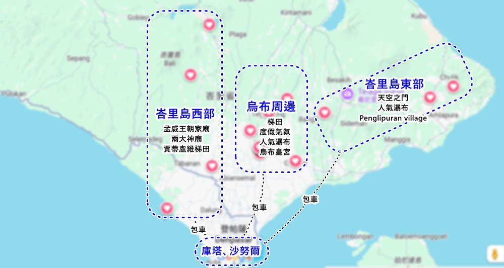 峇里島西部一日遊交通路線規劃