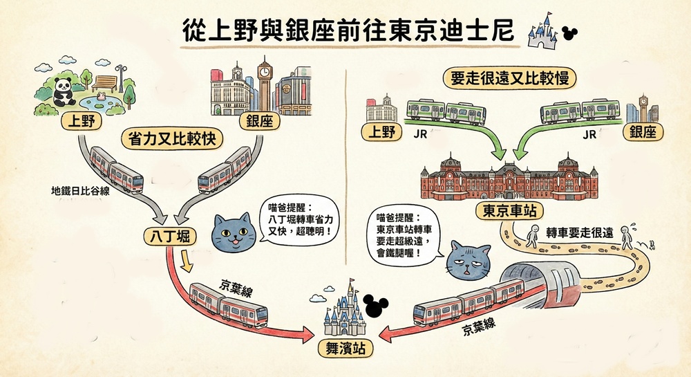 不管是從上野、新宿、東京車站要前往迪士尼?這篇就讓喵爸把焦點放在往返東京迪士尼的交通上吧!