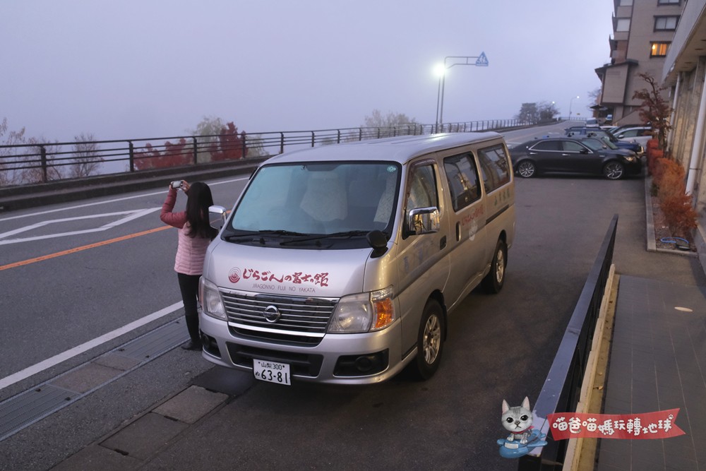 停車則是直接停車飯店門口(免費),但如果車多的時候有可能會叫你留下鑰匙方便工作人員移車。飯店也提供河口湖車站往返飯店的免費接送服務,不過這個就需要事先知會啦。