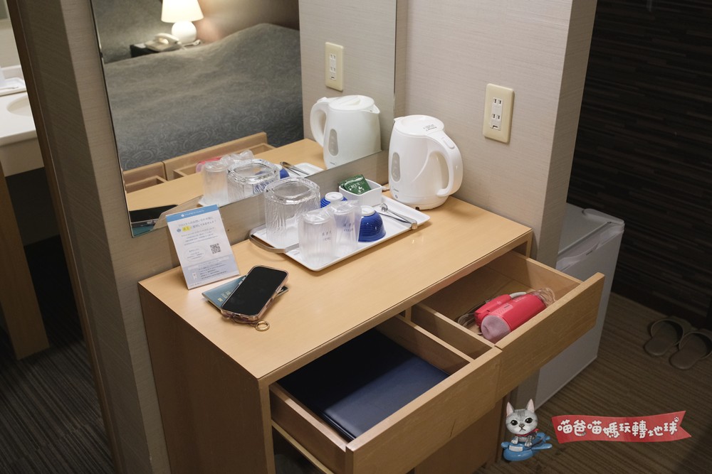 我們第一天抵達的時候天色已晚,隔天一早把窗簾打開才發現富之湖飯店觀看富士山的角度真的有夠正,我跟喵媽就泡上一杯茶坐在窗前發呆,能用這麼便宜的價錢入住富士山景觀飯店,實在是有夠超值。