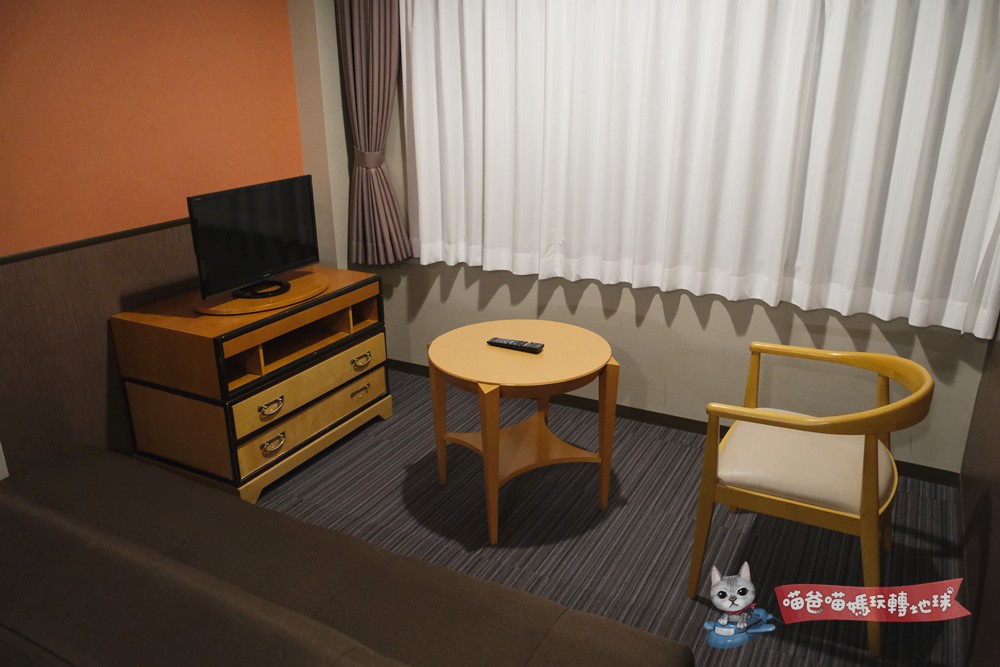 房間屬於長條形格局,空間相當不錯並且擺上面窗的長長沙發,或許部分家具擺設都已經不太符合現今遊客的使用習慣,不過清潔維護到位又空間表現不錯,這價錢入住當真有撿到寶的感覺。