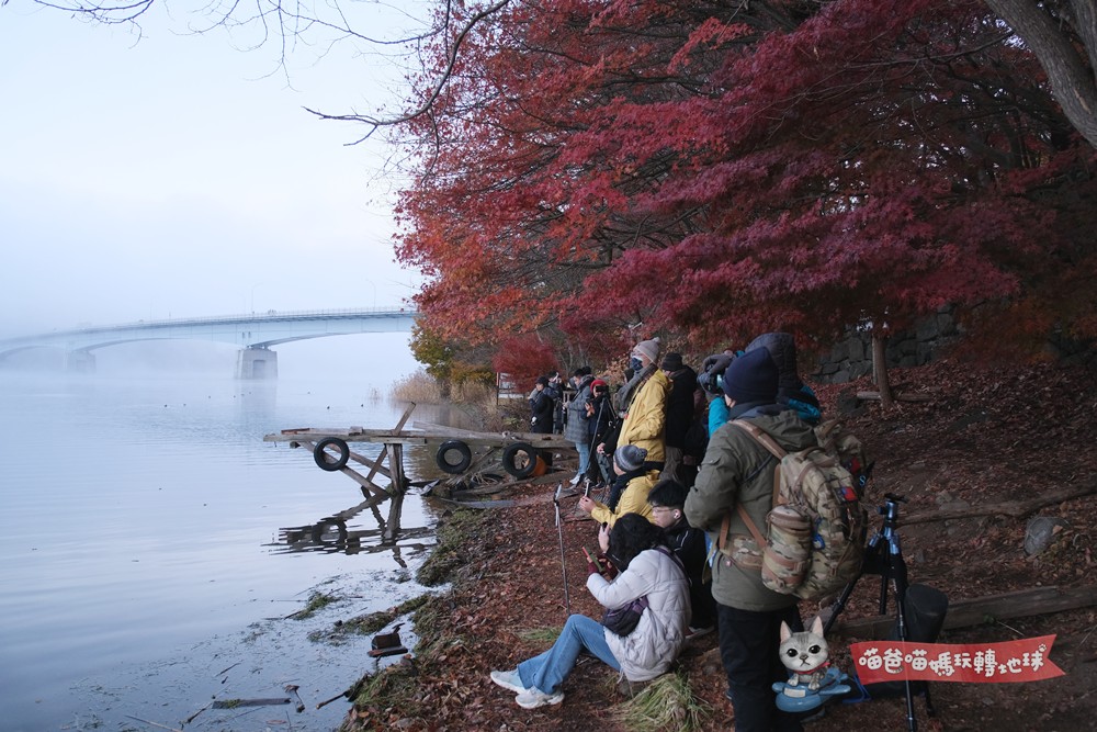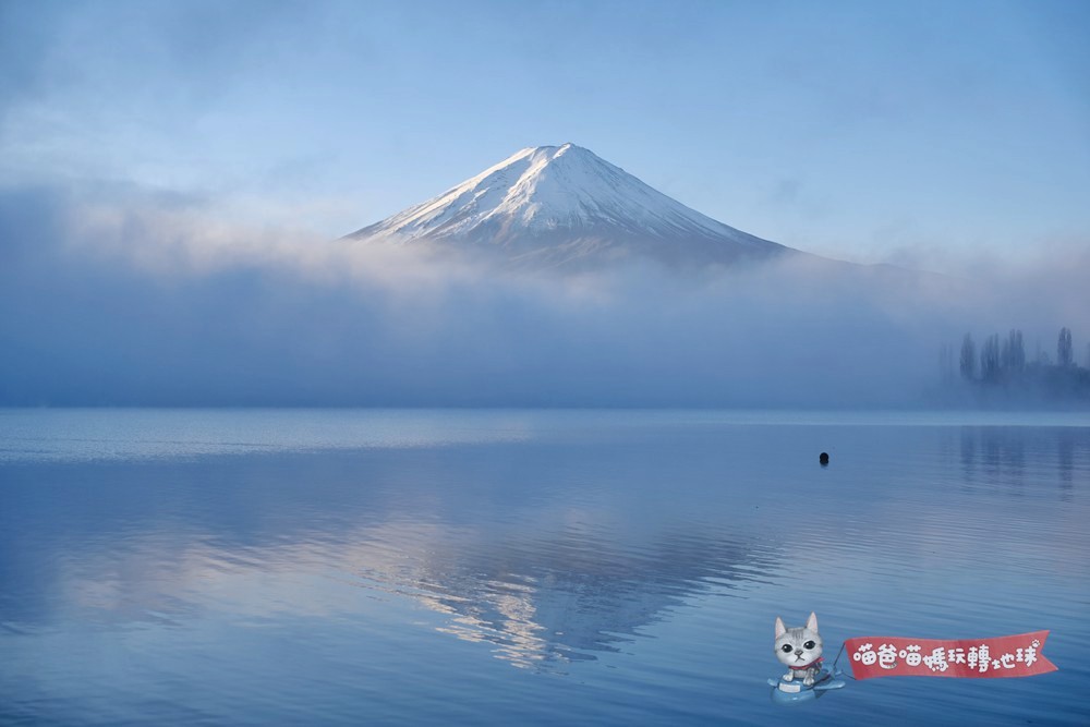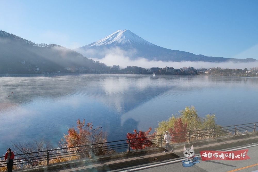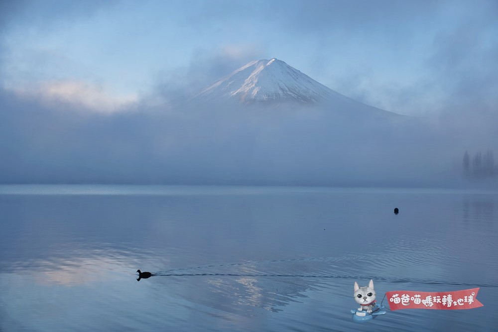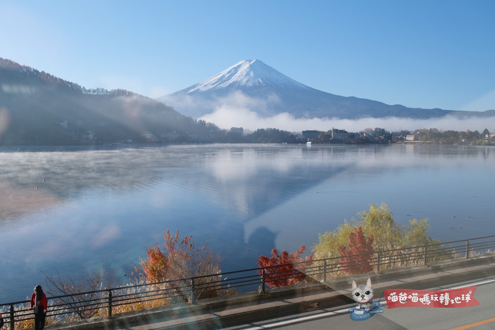 等了接近20分鐘只看到不算完美的半個富士山倒影,不過後來我們在秀峰閣湖月也有補上逆富士風景,這次來到河口湖也算是滿足沒有遺憾^^