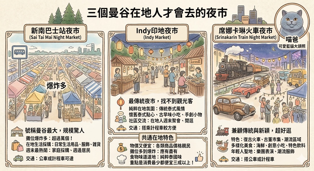 泰國當地友人:你們去的那幾個都是觀光客才會跑的夜市啦,我推薦你們幾個在地夜市,這些物價又便宜、攤位多到爆炸、食物味道道地、重點是每一個夜市消費最少都便宜三成以上!