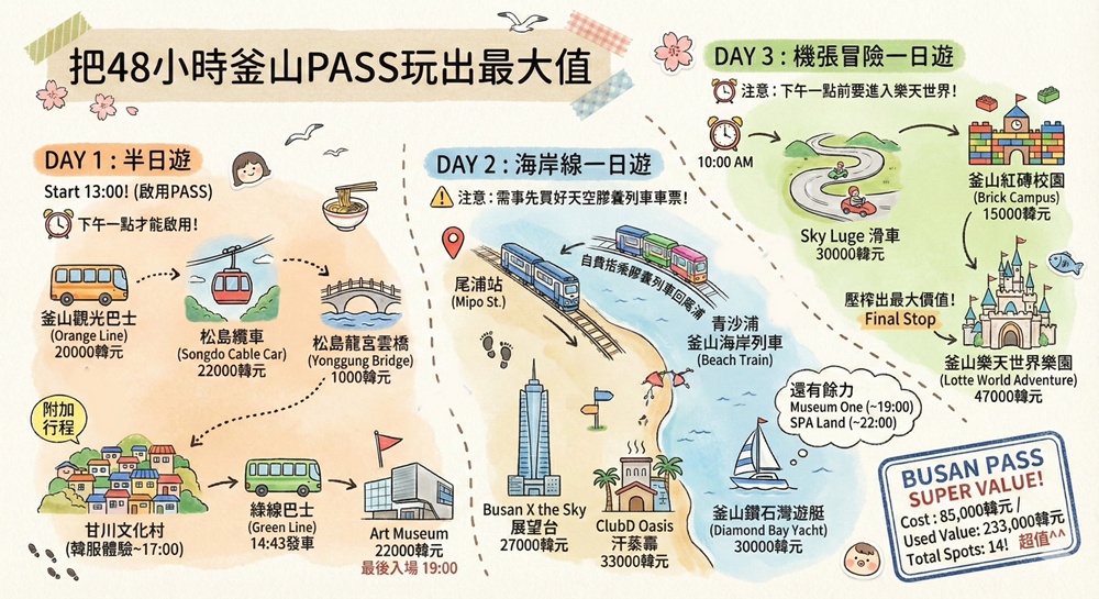 如果你想把釜山PASS的價值發揮到最大,讓喵爸直接幫你排出48小時行程,讓你逼出釜山PASS的極限。