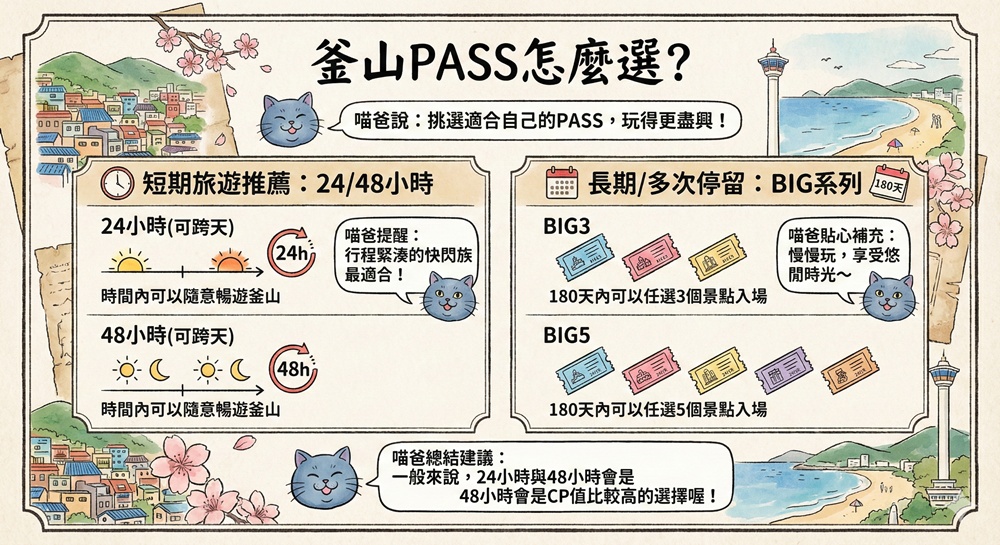 24小時與48小時較適合短期旅遊的遊客,BIG3與BIG5則是適合長期停留或是多次進出釜山的旅客,一般來說24小時與48小時會是CP值比較高的選擇。