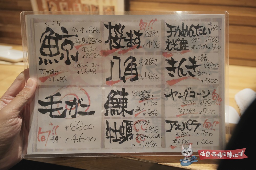 平均消費:如果點毛蟹或是鯨魚料理,每人會落在5000~10000日幣