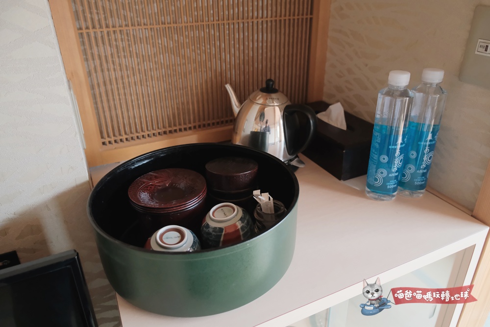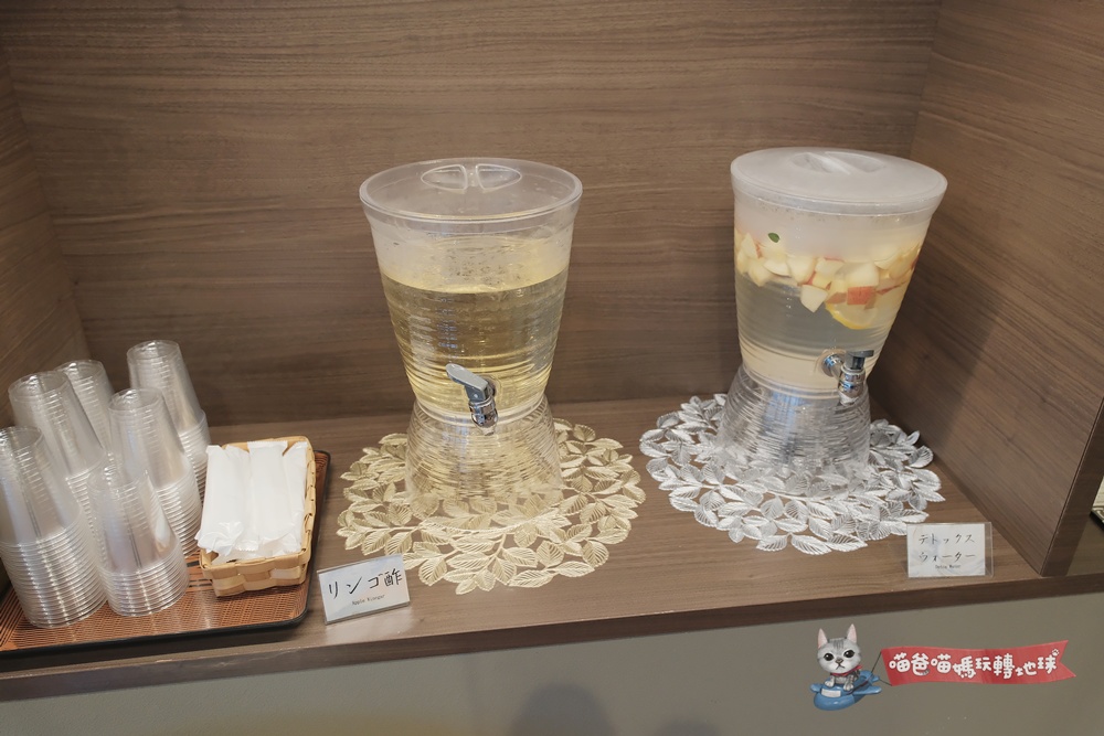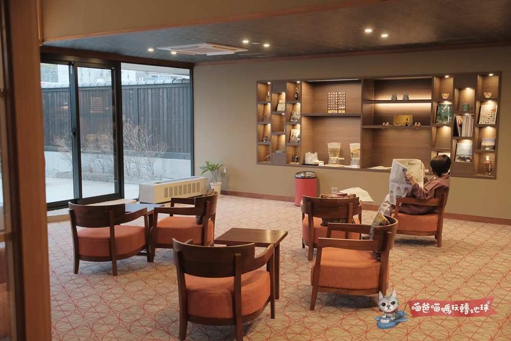 除了迎賓的長野蘋果汁、熱抹茶以外,在大廳的一角也設有免費的飲料吧,領到房間鑰匙還來不及上樓,我跟喵媽就已經先找好位置,坐在落地窗前看著窗外的日式庭園造景,舟車勞頓疲憊瞬間消散了一半。