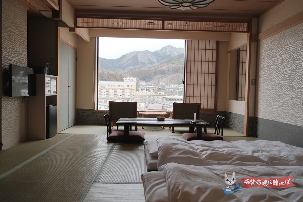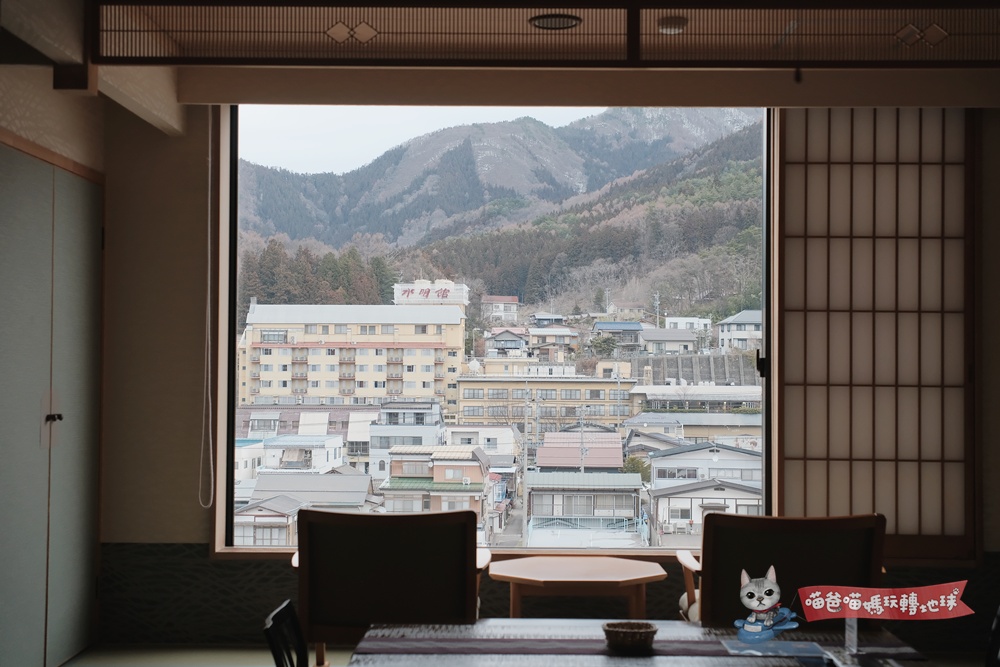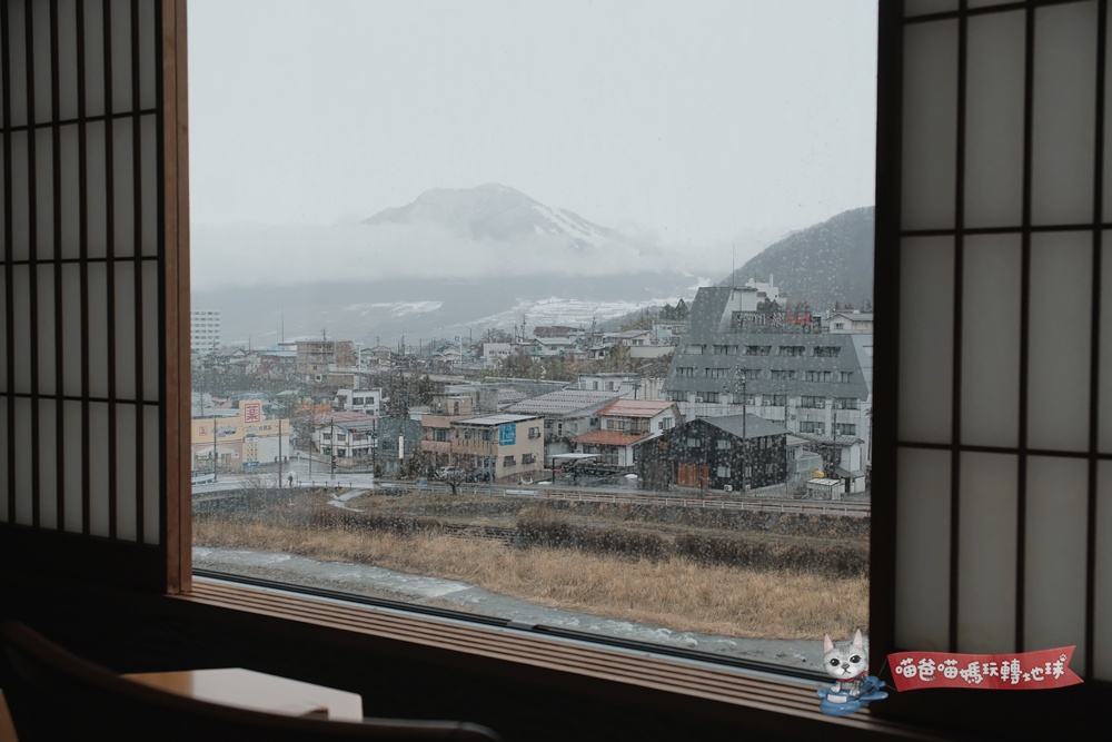 窗外望出去是盡是信州連綿的雪山與溫泉街裊裊炊煙,如此美景就是油屋燈千人氣歷久不衰的原因。