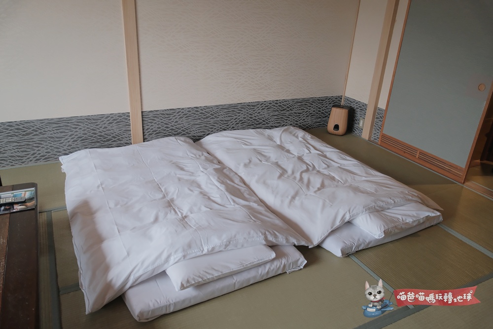 房間的設計走的是沈穩的現代和風,兩張已經鋪好的床墊就直接放在充滿藺草香氣的榻榻米上,房間空間足足有將近25平方米,可說是相當寬敞。