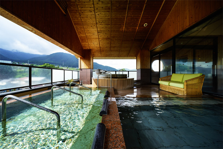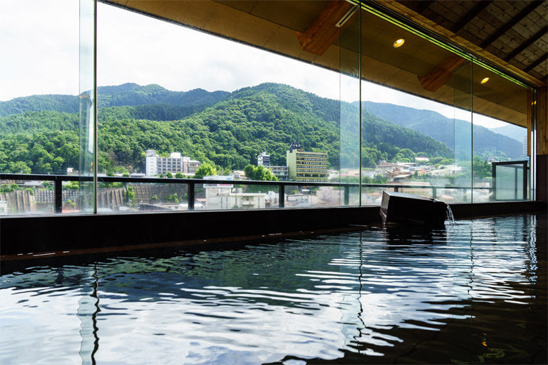 來到溫泉旅館,怎能不去大浴場朝聖一下?油屋燈千的大浴場位於七樓,分為「夢路之湯」與「花敞之湯」,男女湯會在早晚互換,所以兩種都能體驗到。