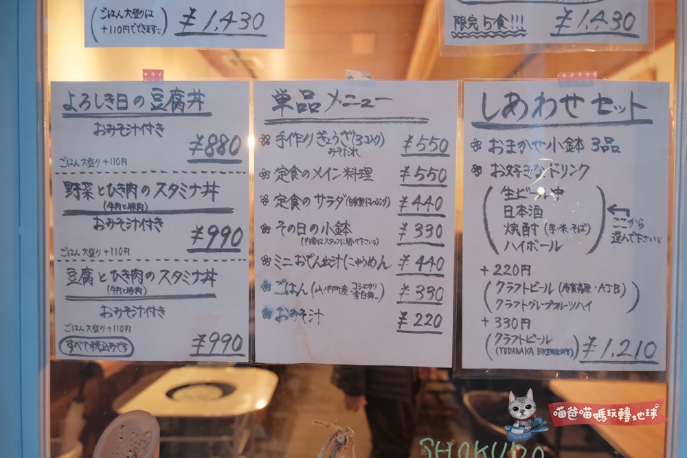 食堂よろしき日主打的就是豆腐定食,頗有傲氣的老闆表明說每個品項提供的數量都不多,如果太晚到基本上都沒甚麼可挑,能吃到甚麼就憑當天的人品與運氣。