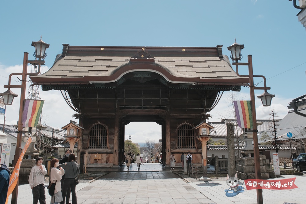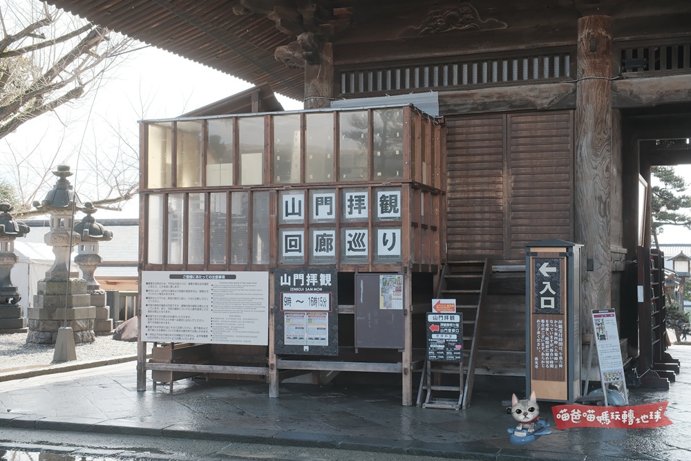 門票:大人500日幣。雖然樓梯有點陡峭,但爬上二樓後視野極佳,可以一覽剛剛走過的長長表參道以及長野市區的景色,回頭則能俯瞰雄偉的本堂,那個視角絕對值得這500日幣。